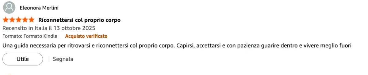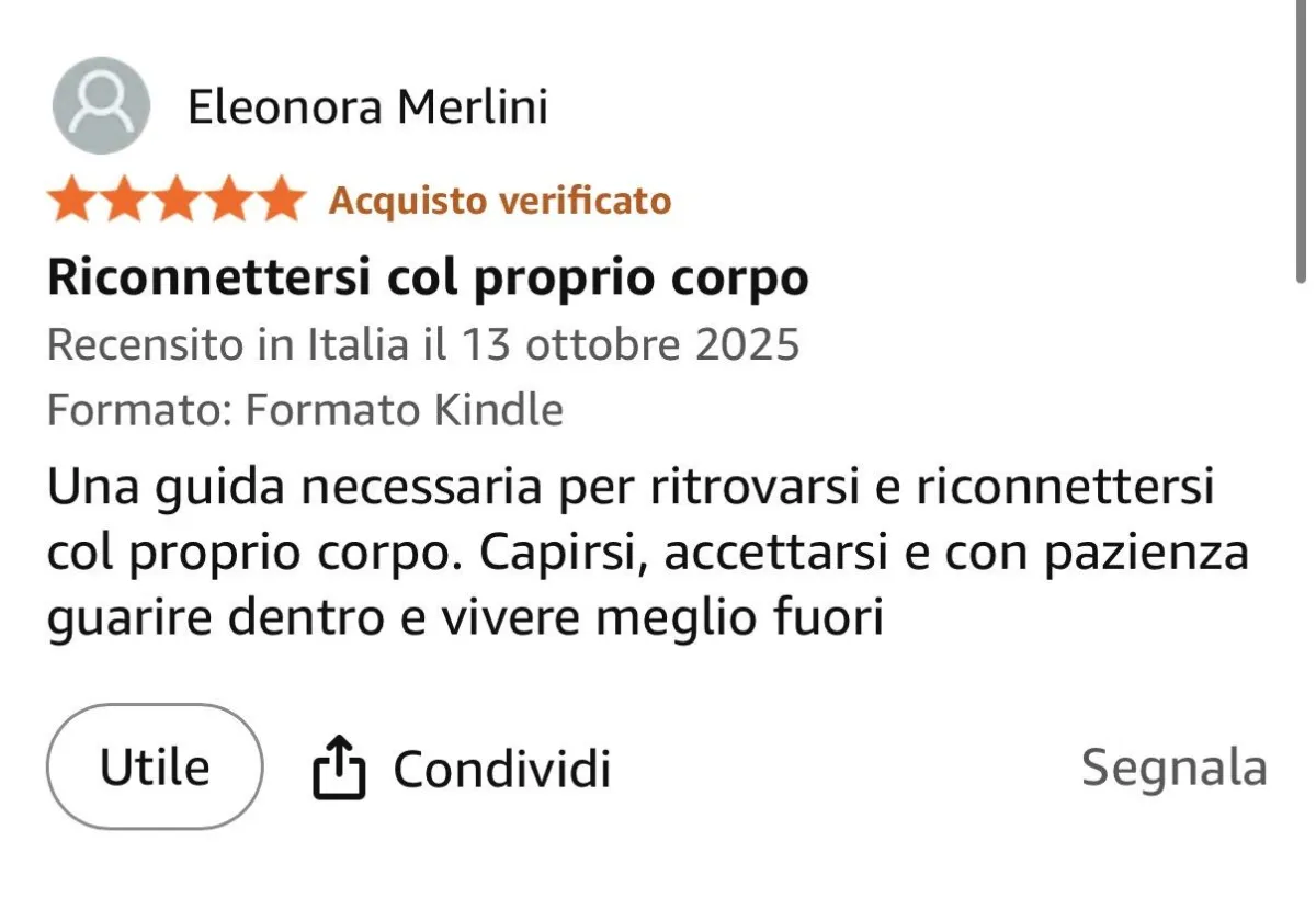 Se entro 30 giorni dall’acquisto lo leggerai, proverai ad applicarne i principi e sentirai onestamente che non ti ha lasciato spunti utili, non ha migliorato il modo in cui senti il corpo o calmato la mente, ti rimborseremo l’intero importo. L’unica condizione è dimostrare di averlo letto e messo in pratica.